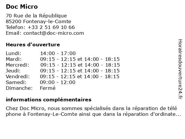 | Mardi | 09:15-12:15 et 14:00-18:15 |