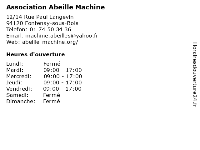 1 Association Fontaine à Mots (Distance: 0,72 km) 3 Rue des ormes, 94120 Fontenay-sous-Bois actions, activités, association, fontaine, insertion, mots 2 Association Chats des Rues - ACR (Distance: 2,54 km) 1 rue Malot, 93100 Montreuil acr, adoptions, animaux, association, chats, des, protection, refuges, rues 3 AMAP L'Abeille Solidaire (Distance: 5,09 km) 28bis rue Romain Rolland, 93260 Les Lilas amap, bio, fruits, l'abeille, légumes, miel, primeur, producteur, solidaire 4 Association Mouvement pour la réinsertion sociale - MRS (Distance: 6,13 km) 7 passage du Bureau, 75011 Paris aides, association, la, mouvement, mrs, pour, réinsertion, social, sociale, soutiens 5 Carnazzi Abeille Anna (Distance: 6,35 km) 36 Rue Boyer, 75020 Paris abeille, anna, carnazzi, restaurants 6 PC HANSSEN MACHINE TOOLS (Distance: 6,41 km) 57 Rue de montreuil, 75011 PARIS hanssen, machine, manufacture, pc, tools |