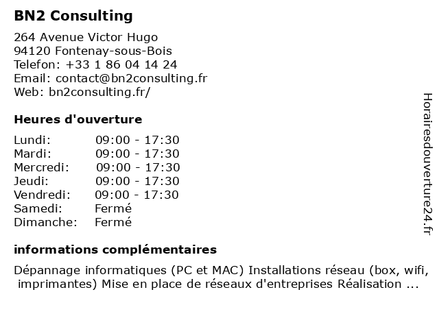 1 KEOLA CONSULTING - PAYROLL ADVICE CORPORATE (Distance: 1,16 km) 201 Rue Carnot Immeuble Le Périgares, 94120 Fontenay sous Bois advice, consulting, corporate, keola, payroll 2 Eden France Consulting (Distance: 1,44 km) 1 bis rue des Carrières, 94120 Fontenay sous Bois administratives, assistance, comptables, conseil, consulting, diagnostic, eden, france, prestations 3 JVT Consulting France (Distance: 3,11 km) 11 avenue Paul Langevin, 93100 Montreuil bureautique, comptabilité, consulting, cours, dactylographie, france, jvt, ordinateur 4 Mjc Télécom et consulting (Distance: 5,89 km) 105 Avenue du Belvédère, 93310 Le Pré-Saint-Gervais consulting, et, mjc, télécom 5 Axxis Intérim & Recrutement - SES Consulting (Distance: 6,72 km) 18-20 boulevard de Reuilly, 75012 Paris agence, axxis, consulting, emplois, intérim, offres, recrutement, ses 6 Inssatad Consulting (Distance: 7,94 km) 1 Avenue Adrienne, 94500 Champigny-sur-Marne consulting, inssatad |