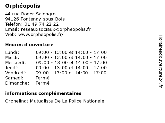 Lundi | 09:00-13:00 et 14:00-17:00 |
