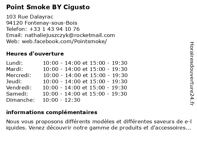 | Lundi | 10:00-14:00 et 15:00-19:30 |