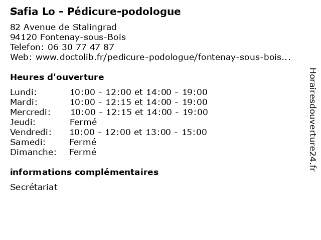 | Lundi | 10:00-12:00 et 14:00-19:00 |
