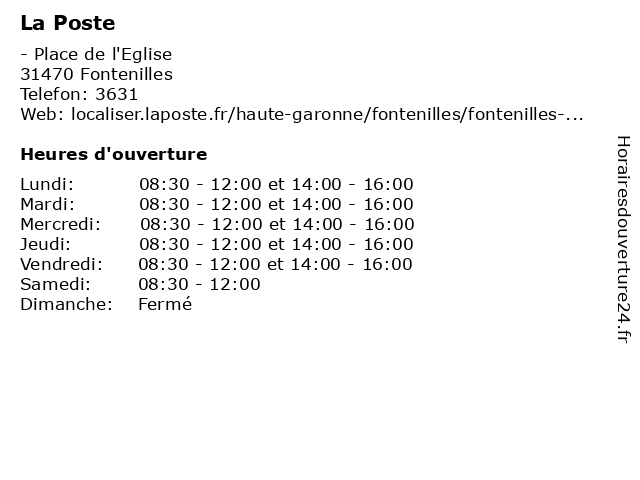 2 La Poste (Distance: 4,93 km) - Avenue Victor Capoul, 32600 Pujaudran colis, express chronopost, expédition, la, poste, réexpédition internationale, service, suivi du courrier 3 La Poste (Distance: 9,79 km) 8 Rue Jean Jaurès, 31600 Saint-Clar-de-Rivière colis, express chronopost, expédition, la, poste, réexpédition internationale, service, suivi du courrier 5 La Poste (Distance: 13,60 km) - Au Village, 32600 Endoufielle colis, express chronopost, expédition, la, poste, réexpédition internationale, service, suivi du courrier 6 La Poste (Distance: 14,95 km) 5 Allée de Fraixinet, 31120 Raques beaute, chaussures, deco, enfants, la, mode femmes, mode hommes, poste, restaurant, sport |
