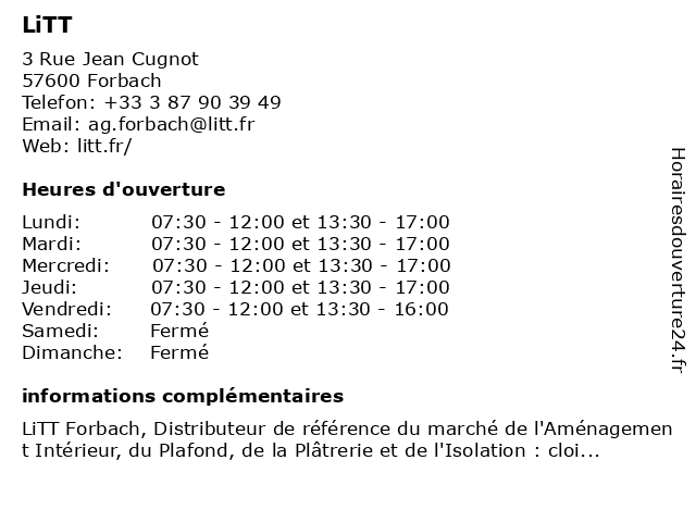 1 Litt - Agence de Forbach (Distance: 3,41 km) . Rue Avogadro, 57600 Folkling agence, cloisons, de, forbach, isolation, litt, services 3 Litt - Agence de Metz (Distance: 52,53 km) 5 Route de Rombas, 57140 Woippy agence, cloisons, de, isolation, litt, metz, services |