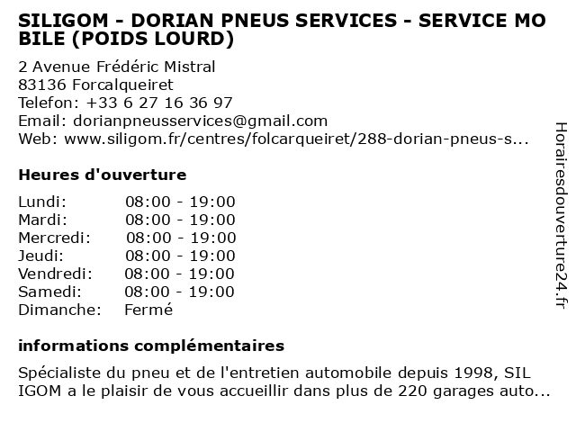 | Lundi | 08:00-19:00 |