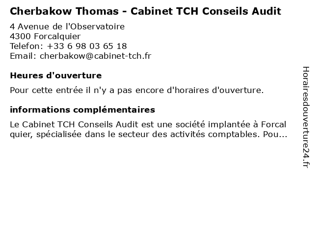 | Appeler Cherbakow Thomas - Cabinet TCH Conseils Audit | |