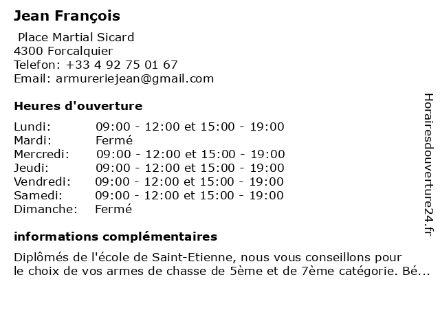 | Lundi | 09:00-12:00 et 15:00-19:00 |