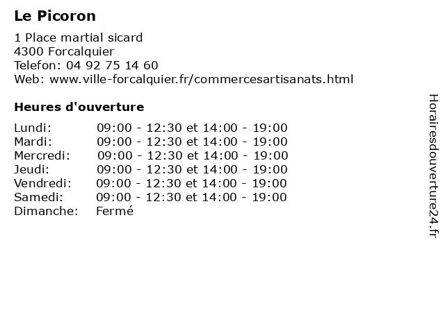 | Samedi | 09:00-12:30 et 14:00-19:00 |