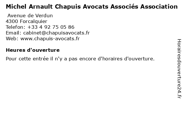 | Appeler Michel Arnault Chapuis Avocats Associés Association | |