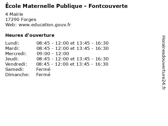 | Lundi | 08:45-12:00 et 13:45-16:30 |