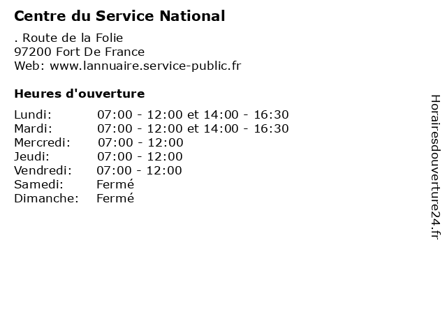 | Mardi | 07:00-12:00 et 14:00-16:30 |