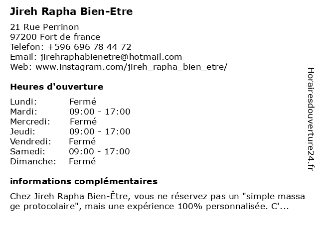 | Lundi | Fermé |