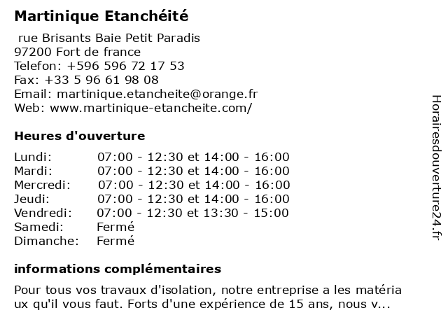 | Samedi | Fermé |