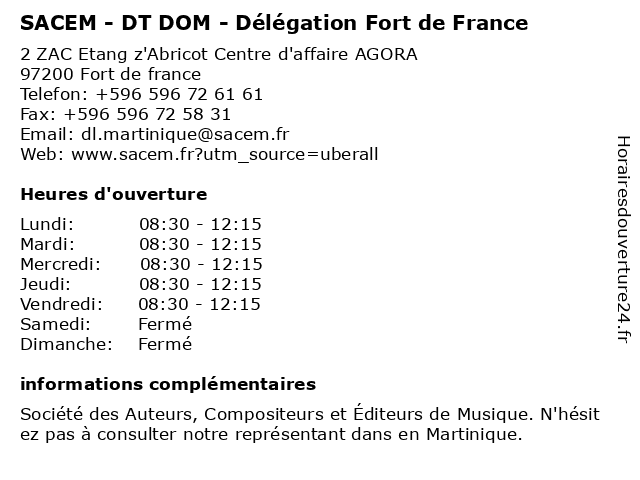 Termes de recherche pour SACEM - DT DOM - Délégation Fort de France:de, france, fort, dom, dt, délégation, sacem |
