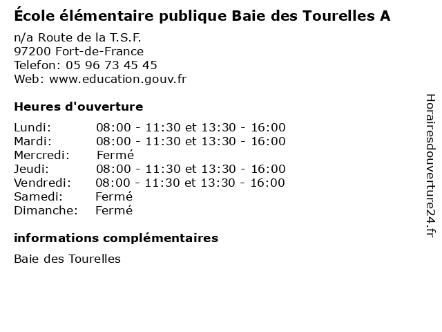 1 École élémentaire publique Suzanne Roussi (Distance: 0,99 km) 2 Route de Schoëlcher, 97200 Fort-de-France cours, publique, roussi, servicios, suzanne, école, élémentaire 2 École élémentaire publique de Briant (Distance: 1,54 km) . boulevard de Briant, 97234 Fort-de-France briant, cours, de, publique, servicios, école, élémentaire 3 École élémentaire publique Solange Londas (Distance: 1,63 km) 110 avenue Abbé Lavigne, 97200 Fort-de-France cours, londas, publique, servicios, solange, école, élémentaire 4 École élémentaire publique Sainte-Thérèse B (Distance: 2,41 km) 10 rue Docteur, 97200 Fort-de-France cours, publique, sainte, servicios, thérèse, école, élémentaire 5 École élémentaire publique Baie des Tourelles B (Distance: 2,54 km) . Route T S F, 97200 Fort-de-France baie, cours, des, publique, servicios, tourelles, école, élémentaire 6 École élémentaire publique Marie-Thérèse Gertrude (Distance: 2,64 km) . Coridon, 97200 Fort-de-France cours, education, gertrude, marie, publique, services, thérèse, École, école, élémentaire |