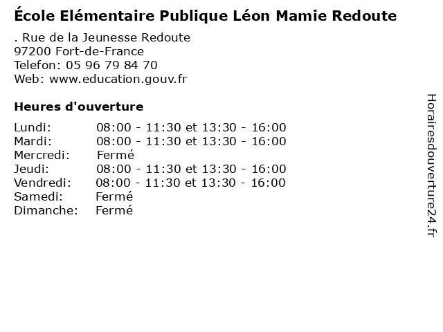 | Lundi | 08:00-11:30 et 13:30-16:00 |