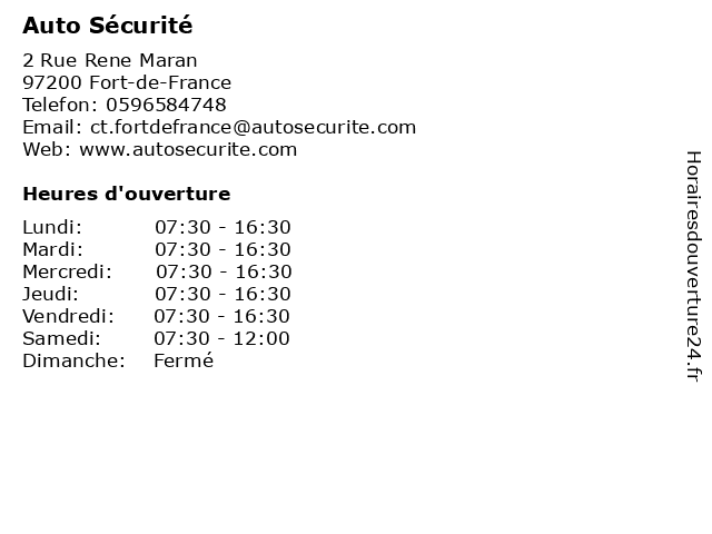 1 Auto Sécurité (Distance: 4,29 km) 36 Ancienne Route De Schoelcher, 97233 Schoelcher auto, automobiles, contrôle technique, motos, sécurité 2 Auto Sécurité (Distance: 10,25 km) - Zone industrielle cocotte, 97224 Ducos auto, automobiles, contrôle technique, motos, sécurité 3 Auto Sécurité (Distance: 15,44 km) - Zone Artisanale de Trianon, 97240 Le François auto, automobiles, contrôle technique, motos, sécurité 4 Direction départementale de la sécurité publique - Martinique (DDSP) (Distance: 1,86 km) 3 Rue Victor-Sévère, 97200 Fort-de-France administration, ddsp, de, direction, départementale, la, martinique, organismes, publics, publique, services, sécurité 5 Direction de la sécurité de l'Aviation civile - DSAC (Distance: 2,74 km) 11 Rue des Hibiscus, 97200 Fort-De-France civile, de, direction, dsac, l'aviation, la, ministère, solidaire, sécurité, transition, écologique 6 Caisse Générale de Sécurité Sociale (CGSS) de Martinique (Distance: 5,23 km) - ZAC de Manhity, 97232 Le Lamentin administration, caisse, cgss, de, générale, la, martinique, organismes, publics, services, sociale, sécurité |