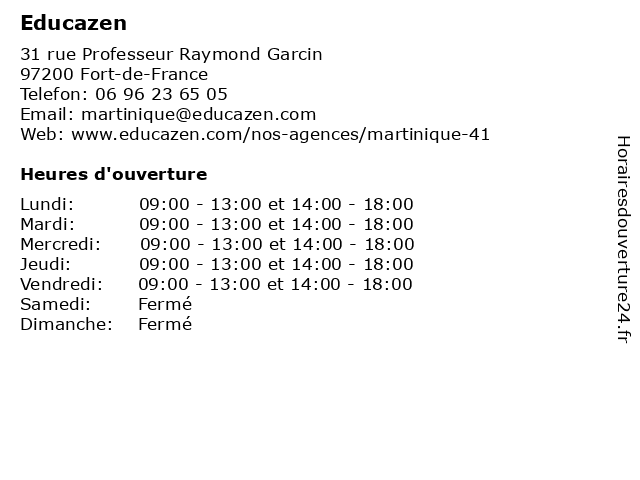 | Lundi | 09:00-13:00 et 14:00-18:00 |