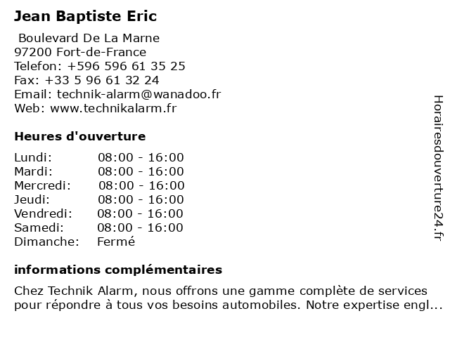 | Dimanche | Fermé |