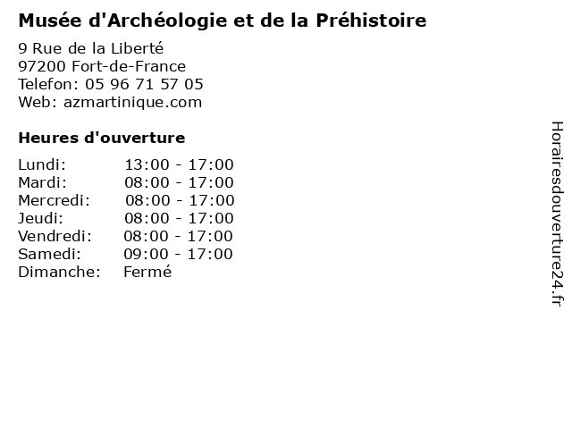 1 Musée d'Histoire et d'Ethnographie (Distance: 0,44 km) 10 boulevard du Général de Gaulle, 97200 Fort-de-France d'ethnographie, d'histoire, documentation, et, expositions, musée, personnages de cire, recherche, tableaux 2 Musée de la Pagerie (Distance: 8,64 km) . La Pagerie, 97229 Trois-Ilets de, la, musée, pagerie, publics, services 3 Musée de la Canne (Distance: 8,66 km) . Vatable, 97229 Trois-Ilets canne, de, la, musée, publics, services 4 Musée de la Mer (Distance: 9,78 km) - Village de La Poterie, 97229 Trois-Ilets collections, coquillages, coraux, crustacés, de, la, mer, musée, oursins, poissons 5 Musée du café et du cacao (Distance: 10,97 km) . Château, 97229 Trois-Ilets cacao, café, du, et, musée, publics, services 6 Musée des Arts et Traditions Populaires (Distance: 14,85 km) . Rue Cassien Sainte-Claire, 97270 Saint-Esprit arts, des, et, musée, populaires, publics, services, traditions |