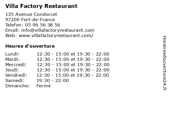 | Vendredi | 12:30-15:00 et 19:30-22:00 |