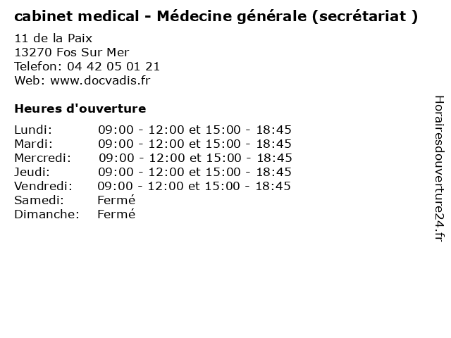 | Lundi | 09:00-12:00 et 15:00-18:45 |