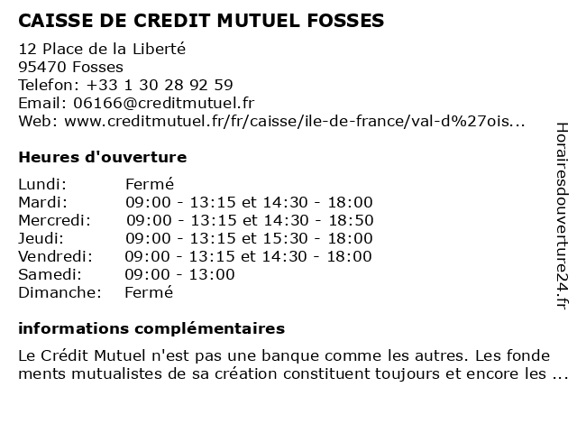Termes de recherche pour CAISSE DE CREDIT MUTUEL FOSSES:de, fosses, crédit, mutuel, caisse |