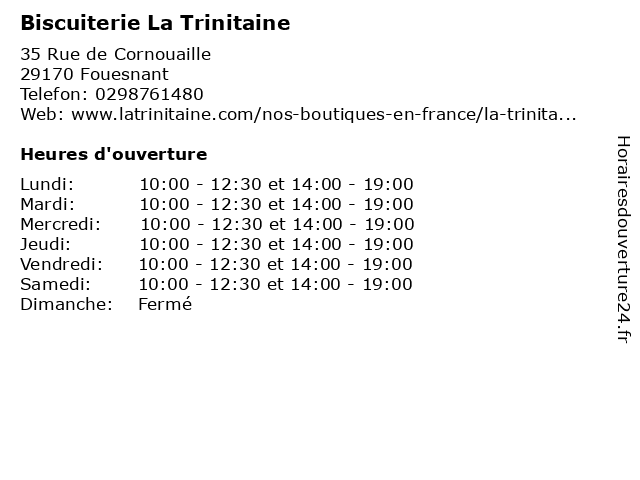 | Samedi | 10:00-12:30 et 14:00-19:00 |