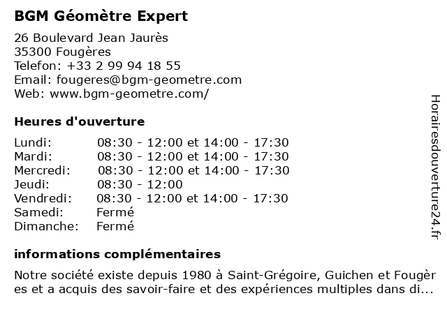 | Lundi | 08:30-12:00 et 14:00-17:30 |