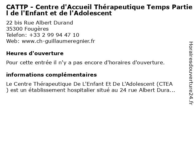 | Appeler CATTP - Centre d'Accueil Thérapeutique Temps Partiel de l'Enfant et de l'Adolescent | |