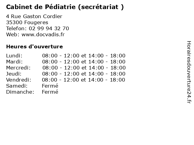 | Mercredi | 08:00-12:00 et 14:00-18:00 |