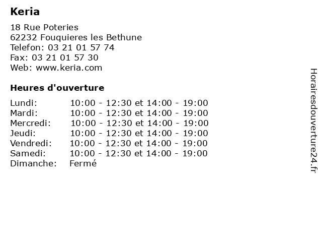 | Samedi | 10:00-12:30 et 14:00-19:00 |