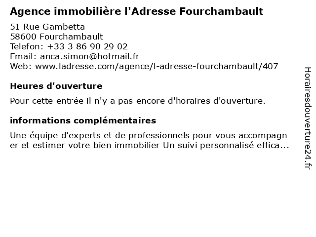 | Appeler Agence immobilière l'Adresse Fourchambault | |