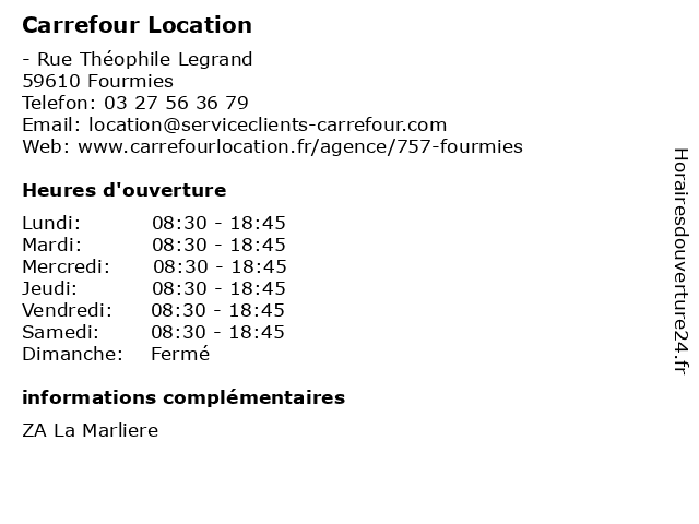 1 Carrefour Drive (Distance: 0,00 km) - Rue Theophile Legrand, 59610 Fourmies alimentaire, carrefour, courses, drive, en ligne, magasin 2 Carrefour Station Service (Distance: 0,01 km) . Rue Théophile Legrand, 59610 Fourmies automobiles, carrefour, oil, service, services, station, stations essences 3 Carrefour (Distance: 0,01 km) - rue Théophile Legrand, 59610 Fourmies carrefour, hard discount, hypermarchés, les dépanneurs, supermarchés 4 Carrefour Banque (Distance: 0,78 km) - Rue Théophile Legrand, 59610 Fourmies assurances, banque, carrefour, services 5 Carrefour Contact (Distance: 5,18 km) 10 Rue Georges Clémenceau, 59186 Anor carrefour, contact, hard discount, les dépanneurs, les hypermarchés, les supermarchés 6 Carrefour Drive (Distance: 10,02 km) - Rue De L'armistice, 02260 La Capelle alimentaire, carrefour, courses, drive, en ligne, magasin |