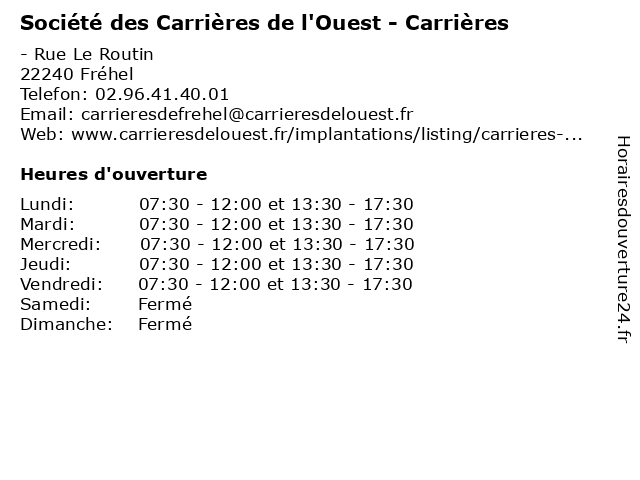 Termes de recherche pour Société des Carrières de l'Ouest - Carrières:de, carrieres, des, l'ouest, societe, construction, travaux, chantiers, fournisseurs |