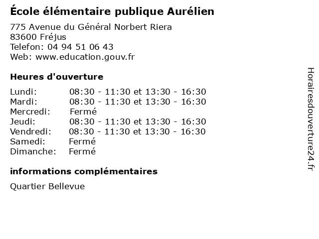 1 École maternelle publique Aurélien (Distance: 0,41 km) . Avenue du Général Riera, 83600 Fréjus aurélien, cours, education, maternelle, publique, services, école 2 École élémentaire publique Réné Char (Distance: 0,68 km) . Rue Henri Giraud, 83600 Fréjus char, cours, publique, réné, servicios, école, élémentaire 3 École élémentaire publique Cais I (Distance: 1,47 km) 2280 Avenue des Combattants, 83600 Fréjus cais, cours, publique, servicios, école, élémentaire 4 École élémentaire publique Paul Roux (Distance: 1,68 km) 112 Chemin Malbousquet, 83600 Fréjus cours, paul, publique, roux, servicios, école, élémentaire 5 École élémentaire publique Les Eucalyptus (Distance: 2,31 km) 25 Rue de Villeneuve, 83600 Fréjus cours, eucalyptus, les, publique, servicios, école, élémentaire 6 École élémentaire publique Hippolyte Fabre (Distance: 2,75 km) 524 Rue Hippolyte Fabre, 83600 Fréjus cours, fabre, hippolyte, publique, servicios, école, élémentaire |