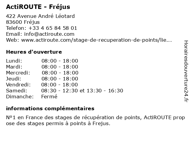 | Samedi | 08:30-12:30 et 13:30-16:30 |
