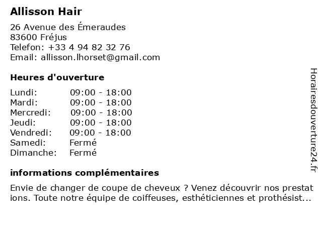 4 Coiffeur Coiff Hair (Distance: 2,93 km) 47 Place Deï Doufin, 83600 Frejus beauté, coiff, coiffeur, coiffure, coiffures, coloristes, hair 5 Novel Hair (Distance: 2,94 km) 1 Place Sadi Carnot, 83700 Saint-Raphaël beauté, coiffeur, forfait, hair, mixte, novel 6 Just Hair coiffure (Distance: 5,28 km) s/n Centre d’Affaires Paragon, 83480 Puget-sur-argens coiffure, hair, just, la beauté, le style, les soins |