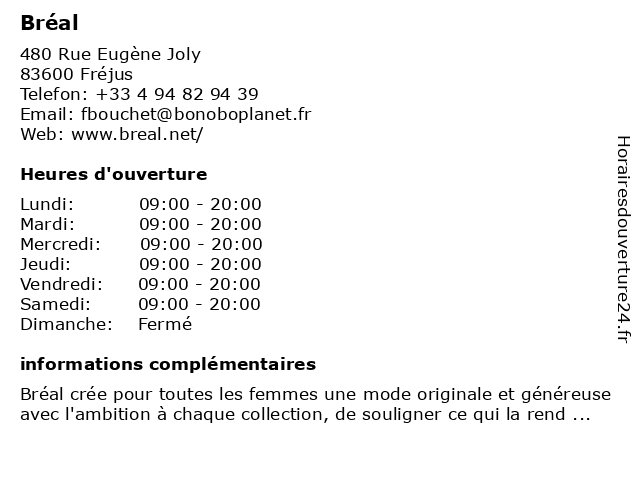 1 Bréal (Distance: 2,75 km) 52 Boulevard Gambetta, 83700 Saint Raphael accessoires, bréal, mode, prêt-à-porter, vêtements 2 Bréal (Distance: 19,89 km) Centre Commercial Hyper U Voie Jacques Prevert, 83460 Les Arcs blazer femme, boutique vêtement, breal, bréal, cardignan femme, chaussures femme, gilet femme, jean femme, magasin vêtement, manteau femme, mode femme, pull femme, robe femme, sac femme, t-shirt femme, tailleur femme, top femme, vêtement femme 3 Vib's (Cache Cache - Bonobo - Bréal) (Distance: 0,02 km) 480 Rue Eugène Joly, 83600 Fréjus blazer femme, bonobo, boutique vêtement, bréal, cache, cardignan femme, chaussures femme, gilet femme, jean femme, jean homme, magasin vêtement, magasin vêtements mixte, manteau femme, manteau homme, mode femme, pull femme, pull homme, robe femme, sac femme, t-shirt femme, t-shirt homme, tailleur femme, top femme, vib's, vêtement femme, vêtement homme, vêtement mixte 5 Vib's (Cache Cache - Bonobo - Bréal) (Distance: 22,96 km) 318 Avenue Francis Tonner, 06150 Cannes blazer femme, bonobo, boutique vêtement, bréal, cache, cardignan femme, chaussures femme, gilet femme, jean femme, jean homme, magasin vêtement, magasin vêtements mixte, manteau femme, manteau homme, mode femme, pull femme, pull homme, robe femme, sac femme, t-shirt femme, t-shirt homme, tailleur femme, top femme, vib's, vêtement femme, vêtement homme, vêtement mixte 6 Vib's (Cache Cache - Bonobo - Bréal) (Distance: 23,05 km) Rue des Narcisses, 83310 Cogolin bonobo, bréal, cache, vib's |