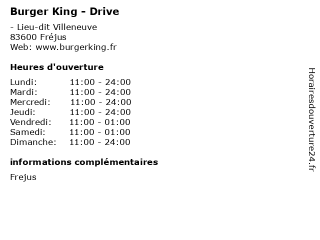 | Vendredi | 11:00-01:00 |