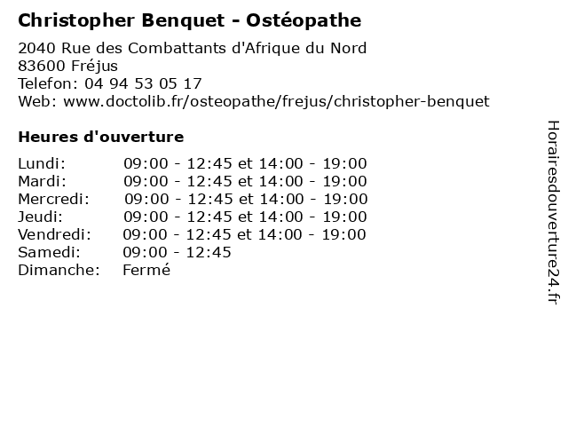 | Lundi | 09:00-12:45 et 14:00-19:00 |