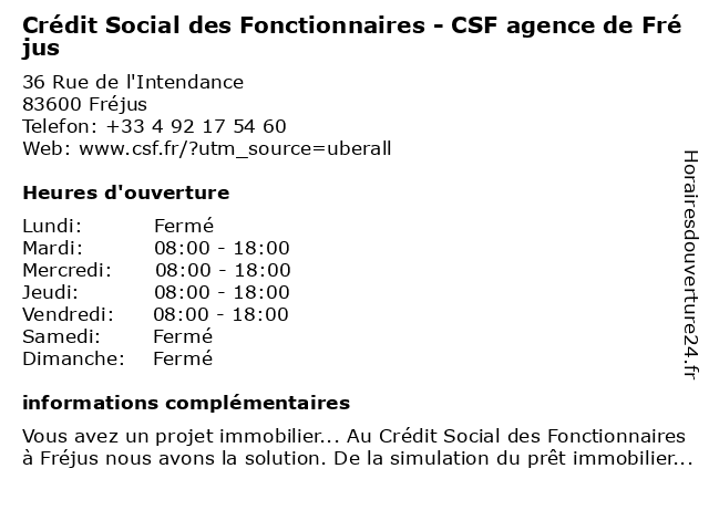 Termes de recherche pour Crédit Social des Fonctionnaires - CSF agence de Fréjus:de, frejus, des, agence, crédit, social, fonctionnaires, csf |