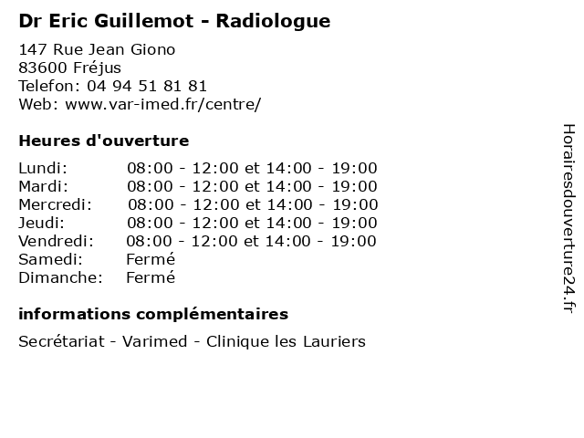 | Lundi | 08:00-12:00 et 14:00-19:00 |