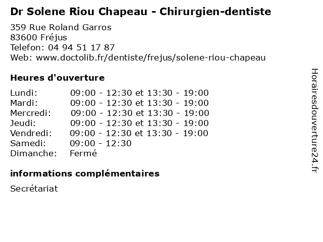 | Vendredi | 09:00-12:30 et 13:30-19:00 |