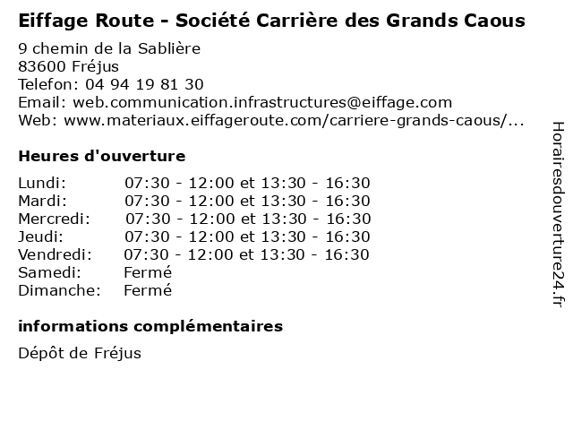 | Vendredi | 07:30-12:00 et 13:30-16:30 |