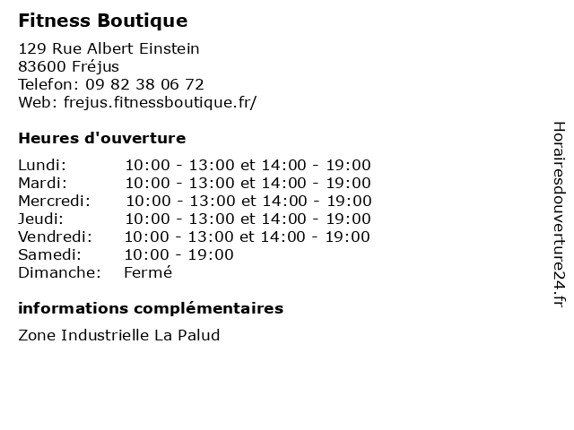 | Lundi | 10:00-13:00 et 14:00-19:00 |