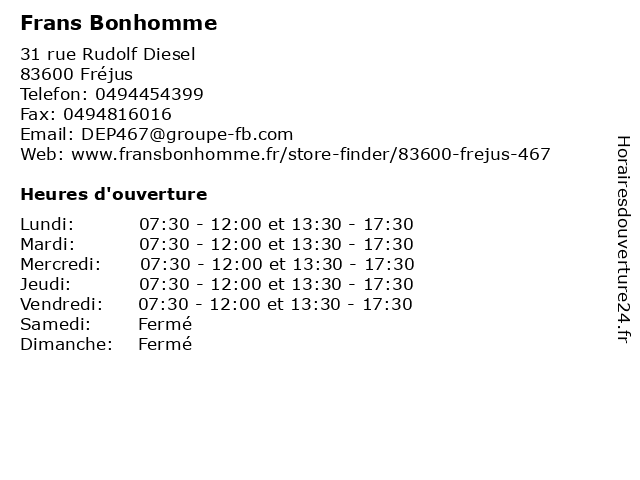| Lundi | 07:30-12:00 et 13:30-17:30 |