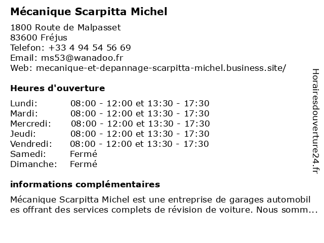 | Mercredi | 08:00-12:00 et 13:30-17:30 |