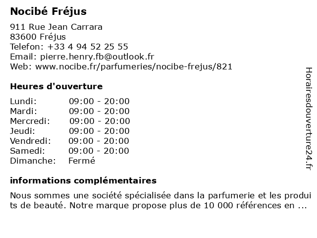 1 Nocibé Puget Sur Argens (Distance: 3,04 km) Les Salles, 83480 Puget-sur-Argens argens, nocibé, puget, sur 2 Nocibé Saint-Raphaël (Distance: 6,18 km) Boulevard de l'Aspé, 83700 Saint-Raphaël nocibé, raphaël, saint 3 Nocibé (Distance: 7,63 km) - Rue de l'oasis, 70000 Puget sur Argens beauté, boutique, institut, magasin, nocibé, parfum, parfumerie, santé, soins 4 Nocibé Sainte-Maxime (Distance: 14,81 km) Place Jean Mermoz, 83120 Sainte-Maxime maxime, nocibé, sainte 6 Nocibé (Distance: 24,83 km) 1 avenue Victor Hugo, 06150 Cannes cosmétique, maquillage, nocibé, parfum, parfumerie |