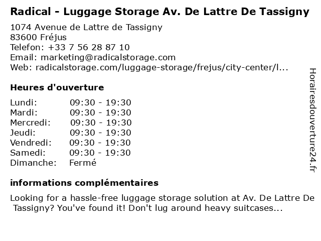 Termes de recherche pour Radical - Luggage Storage Av. De Lattre De Tassigny:de, av., radical, lattre, luggage, storage, tassigny, luggage storage, luggage storage near me |